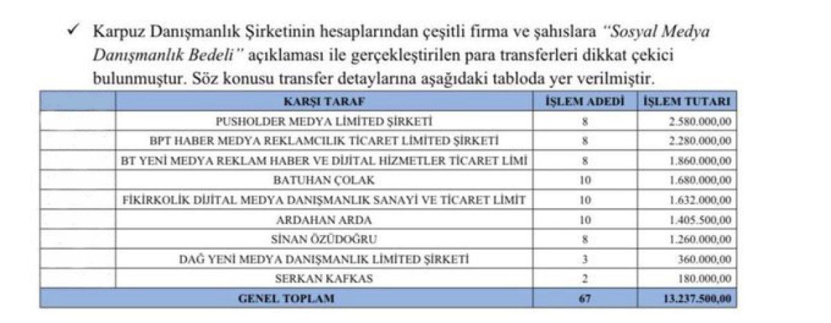 İddianameye göre Emrah Bağdatlı’nın ortağı olduğu Karpuz Danışmanlık Ltd.Şti.’nin para transfer ettiği sosyal medya ajansları şu şekilde sıralandı;