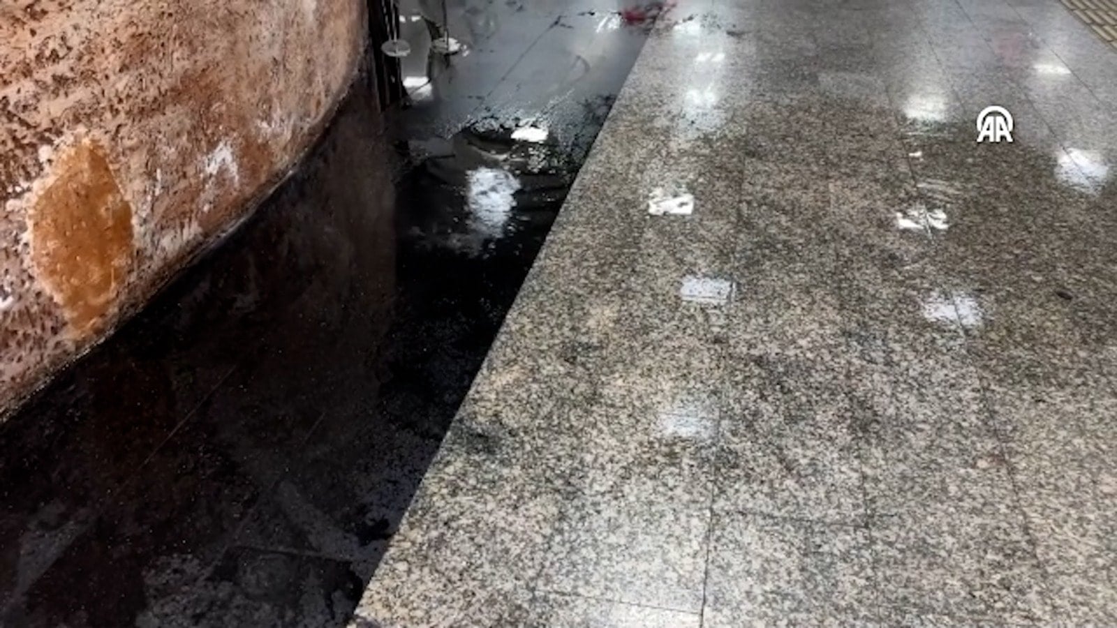 Biriken su, güvenlik görevlisi tarafından çekçekle temizlendi. Metro İstanbul ekiplerinin istasyonda inceleme başlatacağı öğrenildi.