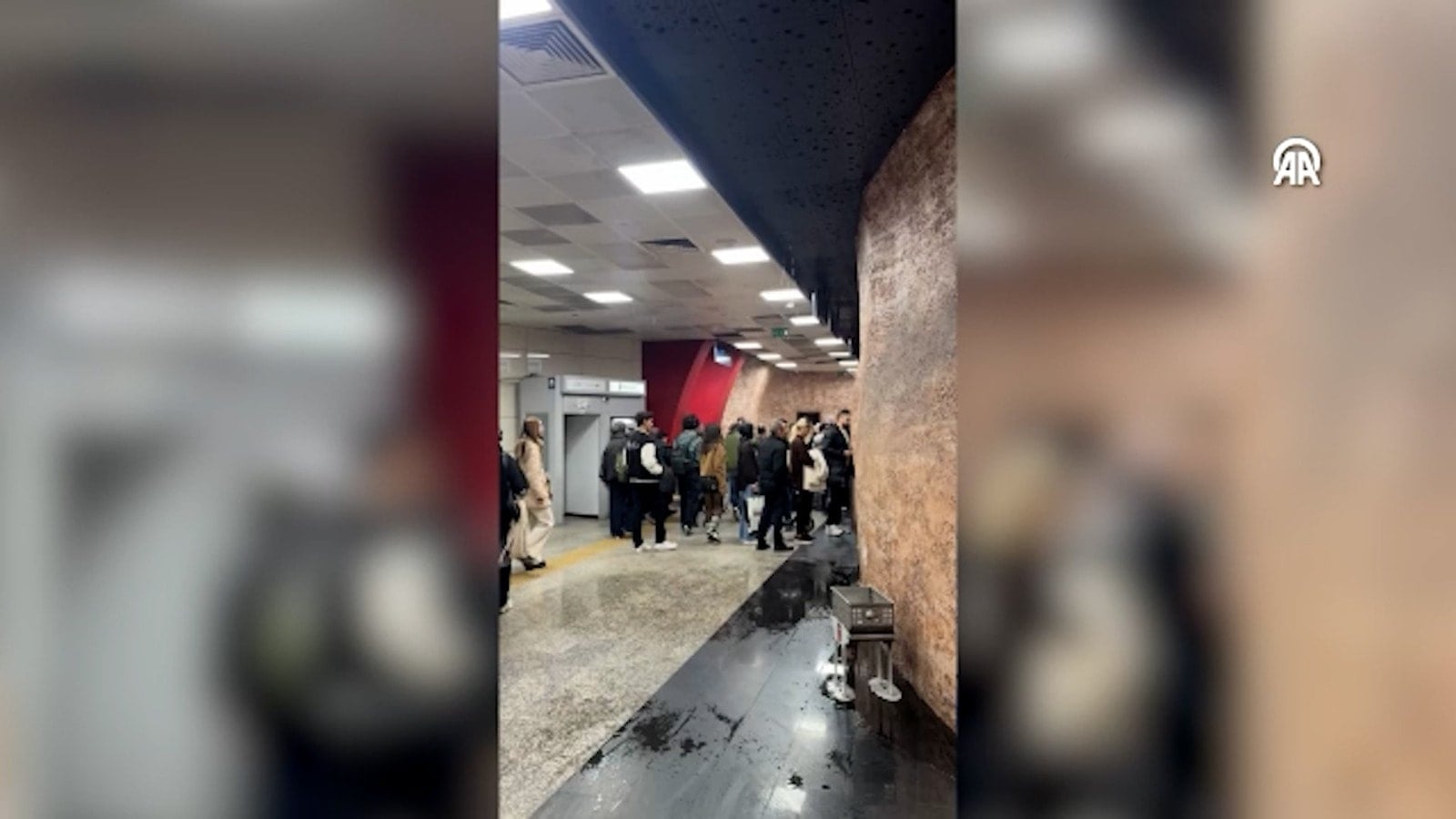 İstanbul’da M2 Yenikapı–Seyrantepe–Hacıosman metro hattının Vezneciler İstasyonu’nda tavandan su akması nedeniyle istasyon içinde su birikintisi oluştu.