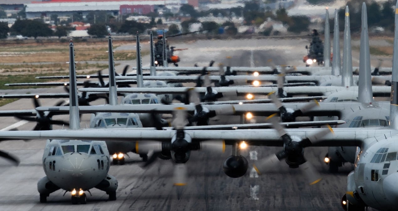 Yunan Hava Kuvvetleri’nin X hesabından yapılan paylaşımda “Günün fotoğrafı” ifadeleriyle ile C-130 nakliye uçaklarının bir fotoğrafları paylaşıldı.
